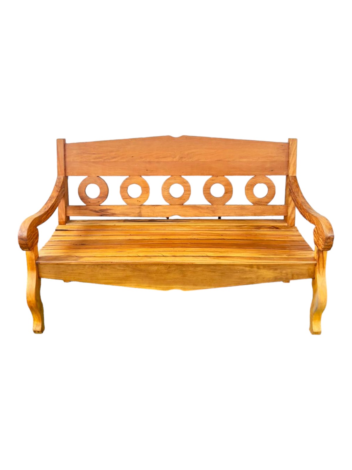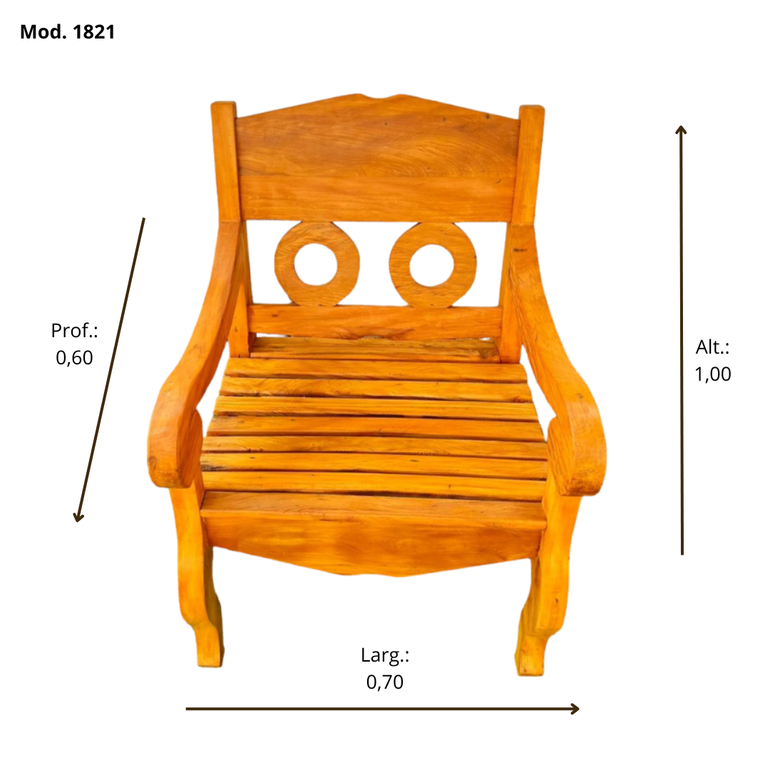 Fabricado em madeira maciça de demolição de alta qualidade, o conjunto é altamente resistente às variações climáticas. A madeira passa por um tratamento especial, tornando-se mais durável e protegida contra pragas e cupins.